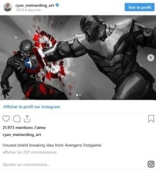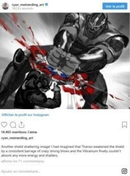 “Une autre image de bouclier brisé ! J’ai pensé que Thanos avait affaibli le bouclier en le frappant à de multiples reprises et que le vibranium ne pouvait plus absorber autant de coups et éclatait.”